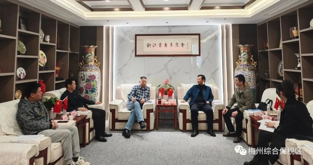 江浙之行首站,招商隊一行前往拜訪浙江省廣東商會、杭州市梅州商會,與浙江省廣東商會秘書長林旻,理事(杭州市梅州商會副會長)劉瀟寒就綜保區(qū)產(chǎn)業(yè)發(fā)展、招商引資等問題進(jìn)行深入交流,林旻表示,以后將在浙-粵兩地的經(jīng)濟(jì)交流活動中更多地關(guān)注和推薦梅州綜保區(qū)。鄧光輝表示,希望借助浙江廣東商會這個平臺,讓更多的粵籍企業(yè)家走進(jìn)梅州、走進(jìn)梅州綜保區(qū),讓綜保區(qū)有機(jī)會更好地服務(wù)于來梅投資的鄉(xiāng)賢企業(yè)家。雙方一致認(rèn)為,要進(jìn)一步開展合作,共同致力于推動梅州綜保區(qū)發(fā)展。