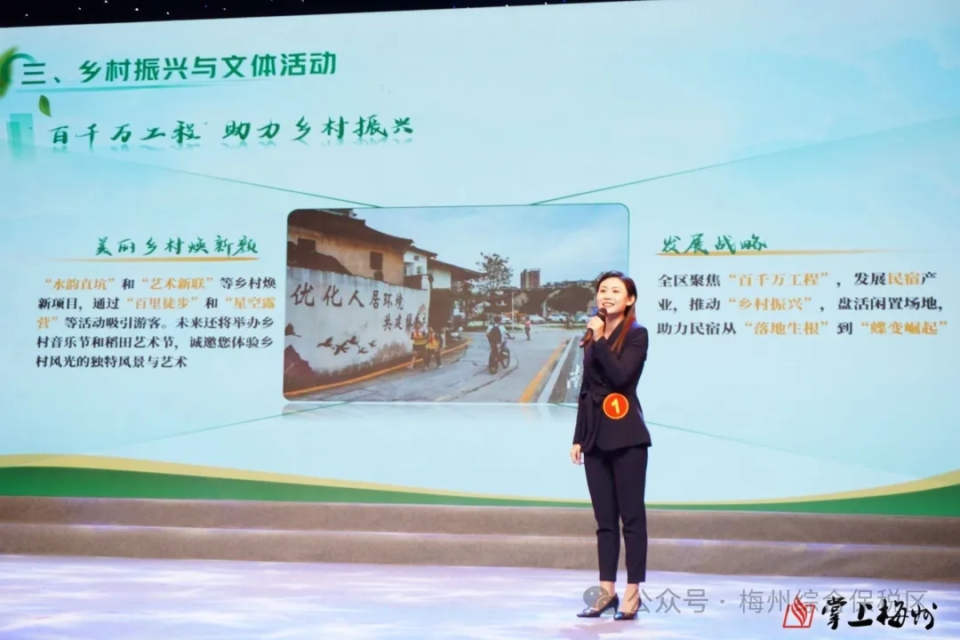 決賽現(xiàn)場,參賽選手分別結(jié)合自身工作實(shí)際開展同臺競技,通過PPT展示、短視頻播放等方式,對梅州市的營商環(huán)境、招商政策、招商成果、具體招商策略等方面,進(jìn)行了主題鮮明、內(nèi)容豐富的宣傳推介。