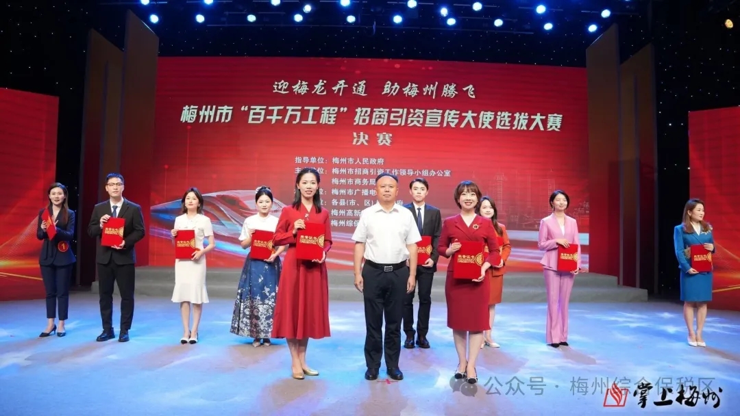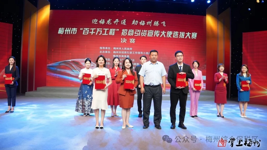 經(jīng)過激烈角逐,首批“招商大使”出爐。其中,選手李純、鄭旭獲得“金獎(jiǎng)”;何家驊、賴丹珠、朱俊熔獲得“銀獎(jiǎng)”;李詩琪、陳思琦、黃裕欽、謝雪金、呂顯霞獲得“銅獎(jiǎng)”。此外,參賽選手還共同宣讀了《梅龍展翼,招商先行》倡議書,呼吁著每個(gè)人都積極參與到招商引資工作中來,為梅州的發(fā)展貢獻(xiàn)力量。