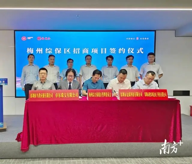 現場共簽約意向入區項目4個,梅州綜保區管委會分別與深圳市金禹科技有限公司、卓爾珠寶有限公司、深圳候鳥供應鏈有限公司、深圳市迎賓鴻達科技有限公司簽約招商項目投資意向書,預計年產值約6.5億元,進出口總額約10億元,包括黃金首飾加工、人造鉆石培育加工、跨境電商、保稅維修等類型,將有力加快梅州綜保區構建布局合理、產業多元、創新發展的保稅新業態,全力助推梅州蘇區融灣先行區建設和全市經濟高質量發展。