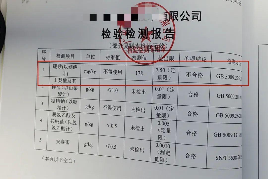 6月19日,梅縣區公安分局聯合區市場監督管理局對梅縣區新城辦事處油坊垅巷某禽肉店進行執法檢查時,在該店鋪內現場查扣粽子和白色晶體“疑似硼砂”一批。執法人員現場調查發現該禽肉店經營者李某平沒有食品生產許可證等資質材料以及涉案食品的合格證明文件,無法保障食品安全。經檢測,粽子樣品含有國家明令禁止使用的硼砂,為不合格產品。7月14日,梅縣區公安分局依法立案偵查,迫于公安機關嚴打壓力,7月23日, 犯罪嫌疑人李某平主動到公安機關投案自首。