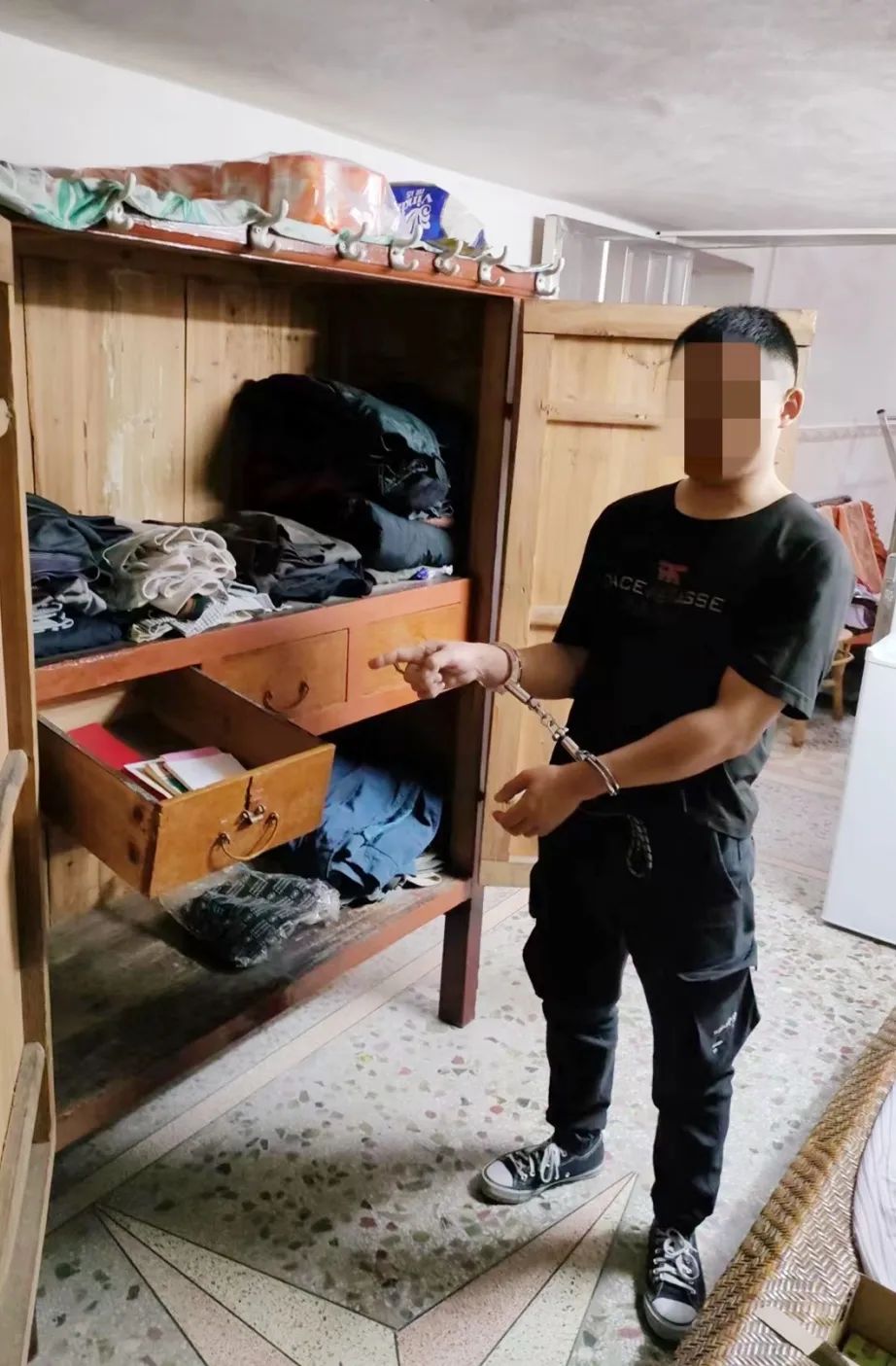 經查,犯罪嫌疑人彭某平曾因盜竊多次被公安機關打擊處理過,今年2月份從監獄出來后,因手頭拮據,便又萌生了行竊的念頭。于7月19日2時許,其駕駛一輛假號牌摩托車來到梅縣區畬江鎮尋找盜竊目標,當來到新梅汕路時,發現一住宅搭有竹架在裝修,其便順著竹架爬到二樓,通過樓梯走到隔壁自建房樓頂,發現該處樓頂的門窗都鎖了。其又找來一條鋼筋用力撬開門鎖進入屋內,在一樓房間的衣柜抽屜里盜得現金后迅速逃離現場的犯罪事實。