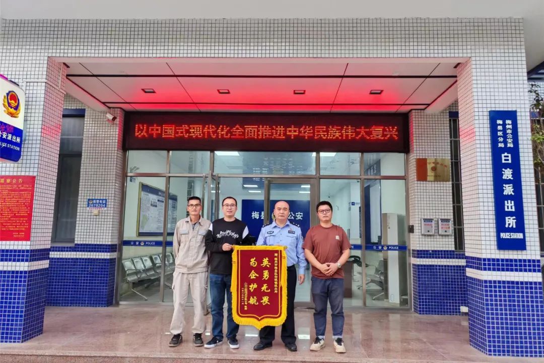 11月10日下午,某電業公司員工一行來到白渡派出所,將一面印有“英勇無畏 為企護航”的錦旗送到民警手上,感謝該所民輔警護航重點工程建設,服務企業付出的艱辛和努力。
