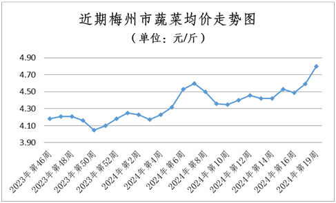 受前期持續半個多月降雨天氣影響,我市蔬菜價格陸續走高,節后一周漲幅較節前一周擴大2.35個百分點。五月仍處于蔬菜大量上市時節,且持續性降雨天氣基本結束,后期我市蔬菜價格或將呈量升價跌的局面。其他農副產品在供應穩定的前提下,價格或繼續以小幅波動為主。