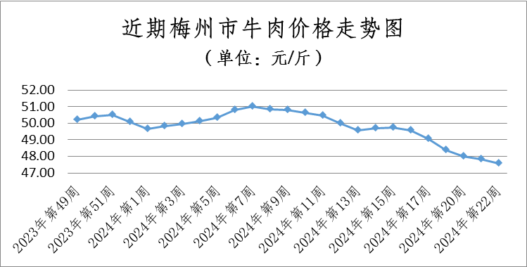 牛肉 | 元/斤 | 47.56 | -0.52% |