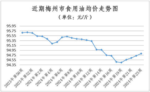 糧油價格保持穩(wěn)定。本周糧食均價為3.14元/斤,環(huán)比(與2024年第22周相比,下同)持平;食用油均價為94.82元/桶(5L),環(huán)比上升0.1%。