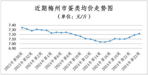 禽蛋價格小幅上漲。監(jiān)測的禽類均價18.57元/斤,環(huán)比上漲0.32%;蛋類均價7.22元/斤,環(huán)比上升0.42%。