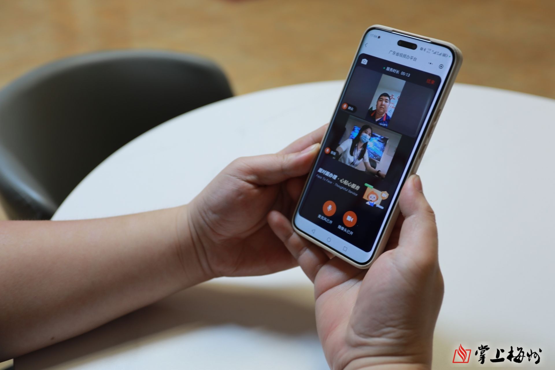 “我們打開粵省事APP/微信小程序,確認首頁左上角辦事城市為‘梅州’后,點擊‘視頻辦’;進入‘視頻辦’專區,點擊‘立即辦理’;選擇區域‘梅州市—梅縣區’;選擇您所需辦理的事項,填寫個人信息,并選擇預約時間;在預約服務時間段進入‘視頻辦’服務專區,點擊‘立即報到’后等待叫號,到號點擊‘連線客服’,即可接入視頻連線客服辦事。”梅縣區政務服務和數據管理局工作人員一邊操作手機一邊向記者介紹道。