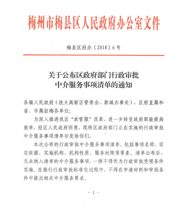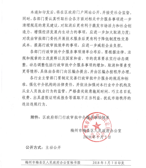 關于公布區政府部門行政審批中介服務事項清單的通知