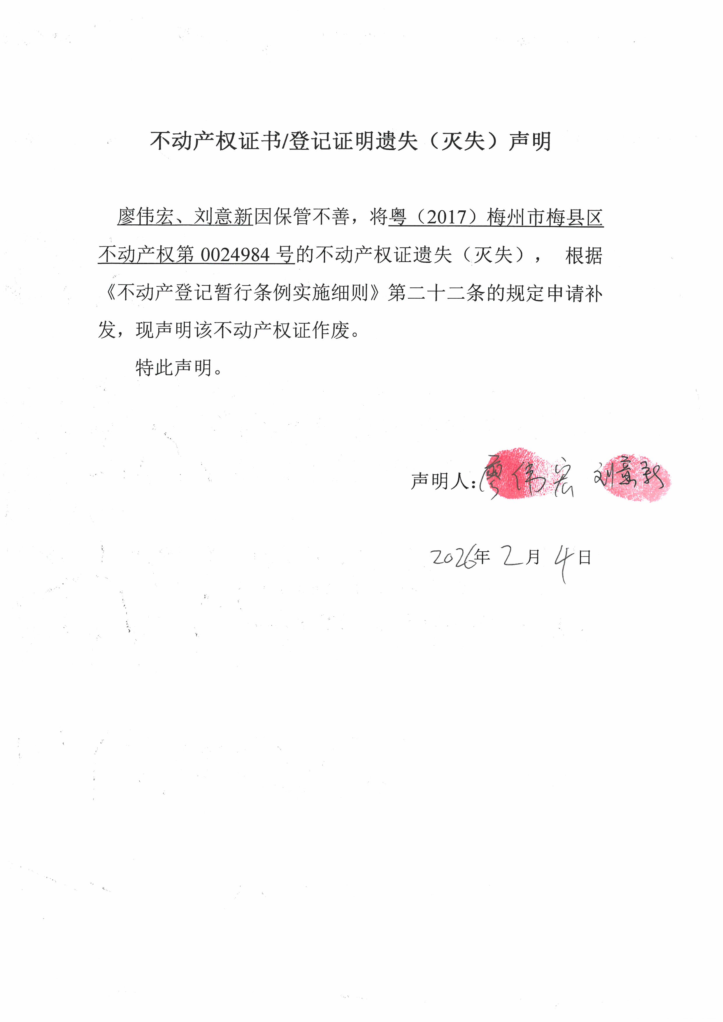 附件:遺失公告-廖偉宏、劉意新-粵(2017)梅州市梅縣區(qū)不動(dòng)產(chǎn)權(quán)第0024984號(hào).jpg