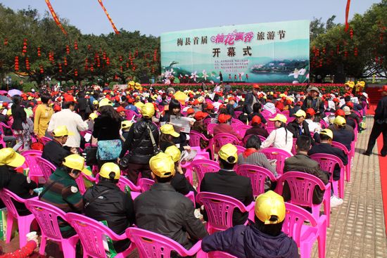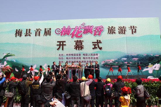 金柚之鄉(xiāng)喜迎客,梅州大地柚花香。3月25日,由梅縣縣委、縣政府主辦、市旅游局和市農(nóng)業(yè)局協(xié)辦、梅縣華銀雁鳴湖旅游度假村承辦的梅縣首屆柚花飄香旅游節(jié)系列活動在雁鳴湖旅游度假村拉開帷幕。省農(nóng)業(yè)廳副廳長蔡漢雄,廣州中醫(yī)藥大學(xué)黨委副書記、教授、博士生導(dǎo)師孫曉生,廣東聯(lián)合電子收費(fèi)股份有限公司副總經(jīng)理丁云舟,梅州市戰(zhàn)略發(fā)展顧問、上海客聯(lián)會會長、教授丘峰,廣東旅游文化協(xié)會副會長武旭峰,廣東自駕游協(xié)會副秘書長王興有,梅州市人民政府副市長李遠(yuǎn)青,梅縣班子領(lǐng)導(dǎo)以及市縣有關(guān)部門負(fù)責(zé)人,中央人民廣播電臺、中國國際廣播電臺、中國旅游報、南方日報、廣東電視臺、梅州日報等26家海內(nèi)外新聞媒體記者,旅游界、攝影界人士等1000多人參加了開幕式。