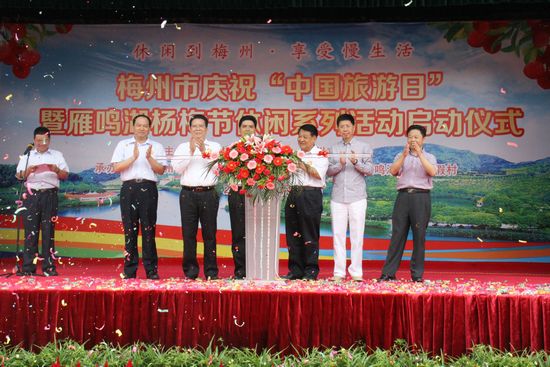 5月19日,由梅州市旅游局、梅縣人民政府主辦,梅州市旅游協會、梅縣旅游局、梅縣華銀雁鳴湖旅游度假村承辦的中國旅游日暨雁鳴湖楊梅節休閑系列活動在雁鳴湖旅游度假村拉開帷幕。市人大常委會原常務副主任古小平、李俊夫,副市長李遠青等出席。來自中國旅游報、廣東電視臺新聞頻道、羊城晚報、南方都市報、梅州日報等新聞媒體的記者以及市民、游客等1000多人參加了啟動儀式。