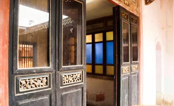 中堂是整座房屋的核心,因此裝飾得分外華麗。屋檐裝飾木雕和兩邊廂房的屏風以及堂屋墻上的壁畫。