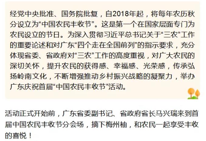 今天上午,廣東省人民政府馬興瑞省長到首屆中國農民豐收節梅州分會場暨廣東慶祝