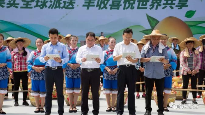 梅縣區大黃村黨委書記廖建明共同啟動梅州市人民政府與順豐速運共建的“現代農業綜合物流商流平臺”,