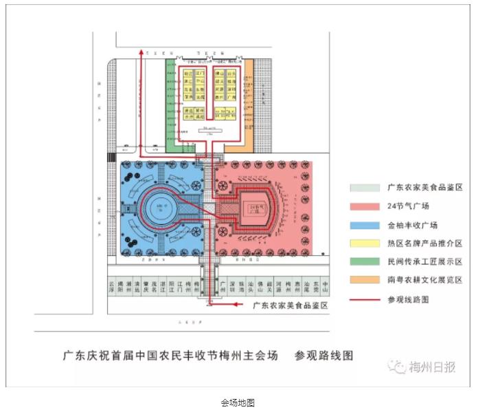 展區:嶺南民俗文化表演區、南粵農耕文化展覽區、民間傳承工匠展示區、熱區名牌產品推介區、廣東農家美食品鑒區、梅州地方特色活動演示區