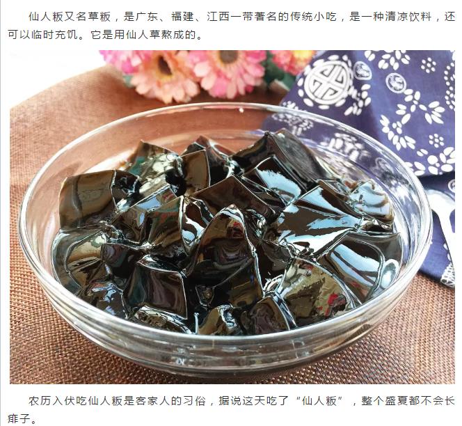 仙人粄有降溫解暑之功,且無受冷患寒之弊,在“仙人粄”中調(diào)入蜂蜜,再灑上點(diǎn)香蕉露,食之清甜爽口,沁人心脾。