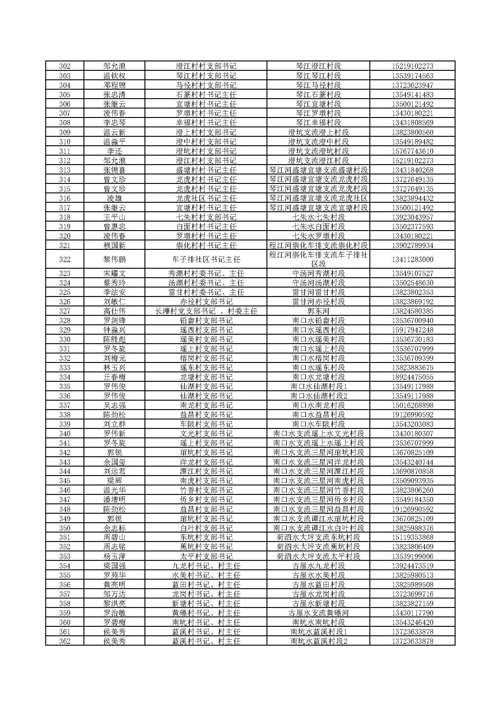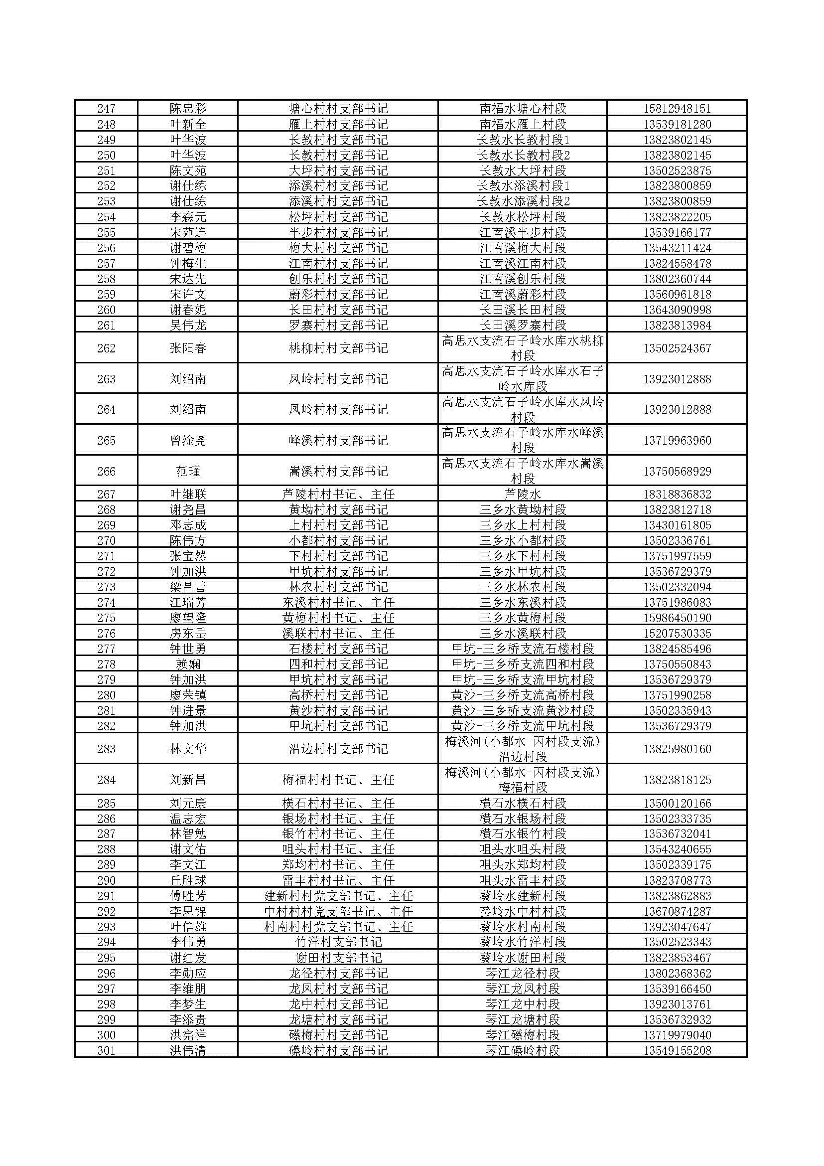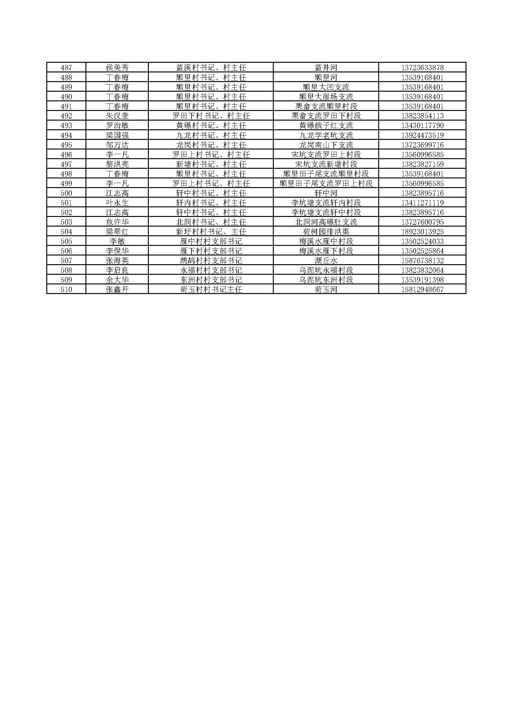 四、村級(jí)負(fù)責(zé)河長(zhǎng)