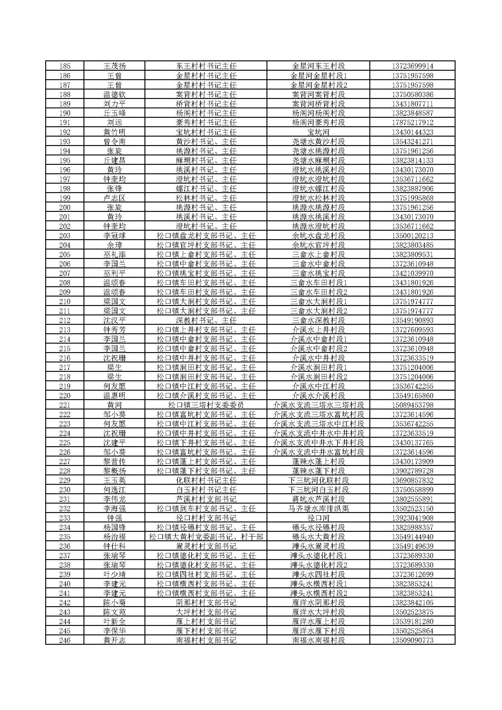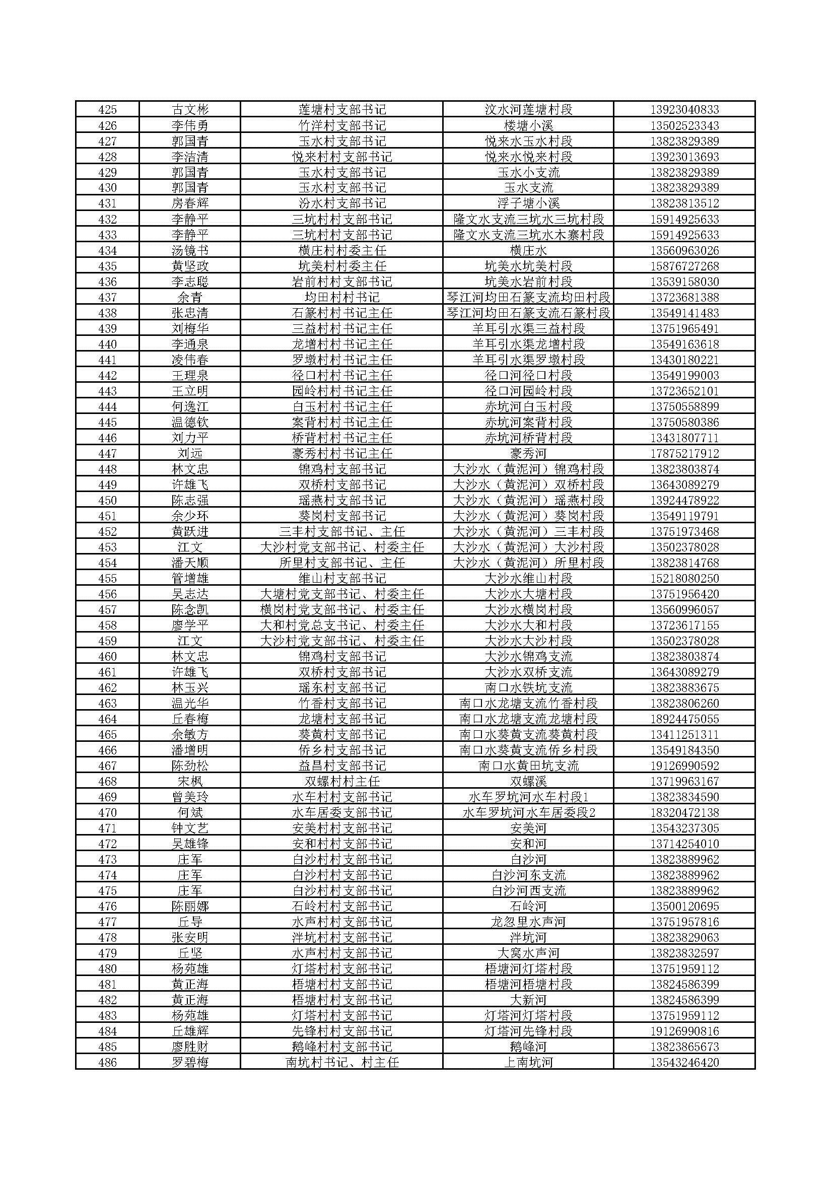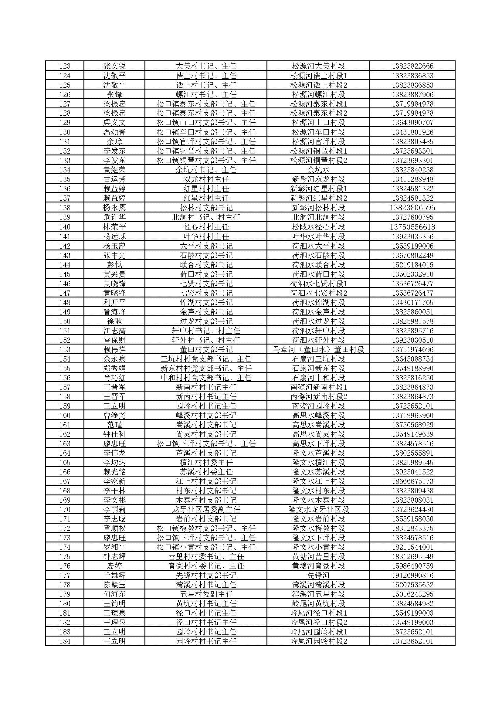 四、村級(jí)負(fù)責(zé)河長(zhǎng)