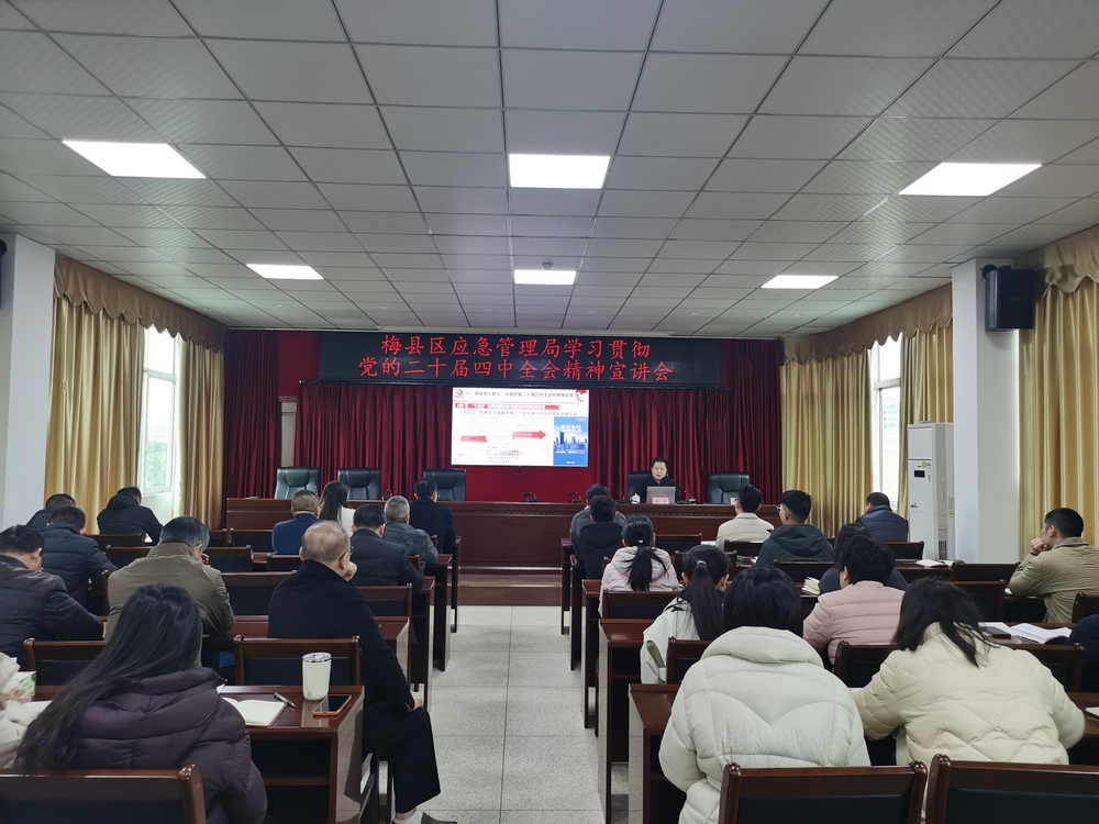 為深入領會黨的二十屆四中全會精神的重大意義、核心要義與實踐要求,12月26日,梅縣區(qū)應急管理局召開專題宣講會,集中學習貫徹黨的二十屆四中全會精神。會議邀請梅縣區(qū)委宣講團成員、梅縣區(qū)委黨校培訓室主任王巖同志作專題宣講,全局干部職工參加學習。
