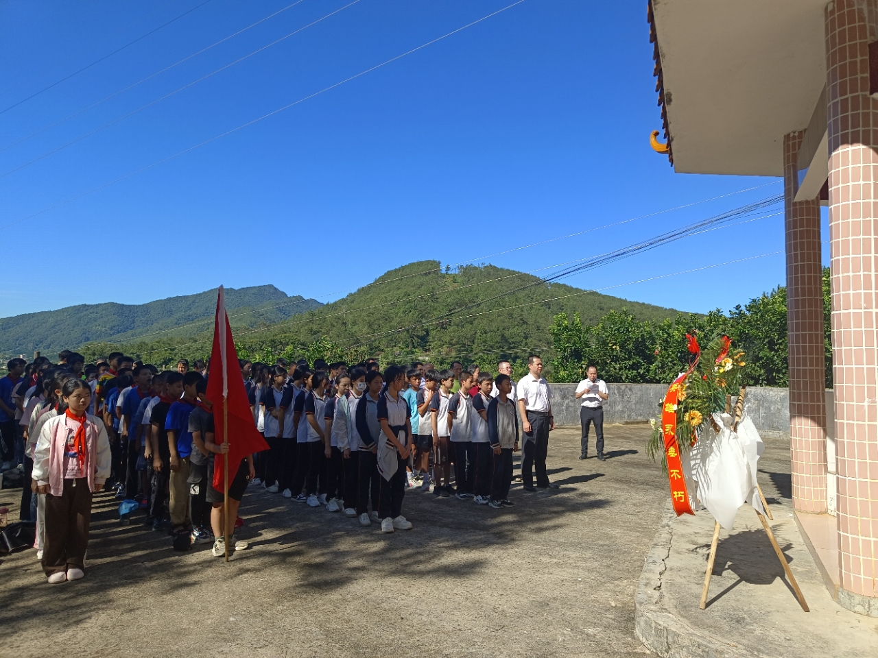 活動現(xiàn)場,氣氛莊嚴肅穆,全體人員整齊排列在紀念碑前,向革命烈士默哀、敬獻花籃,瞻仰烈士紀念碑,深切緬懷先烈豐功偉績,寄托無限哀思。