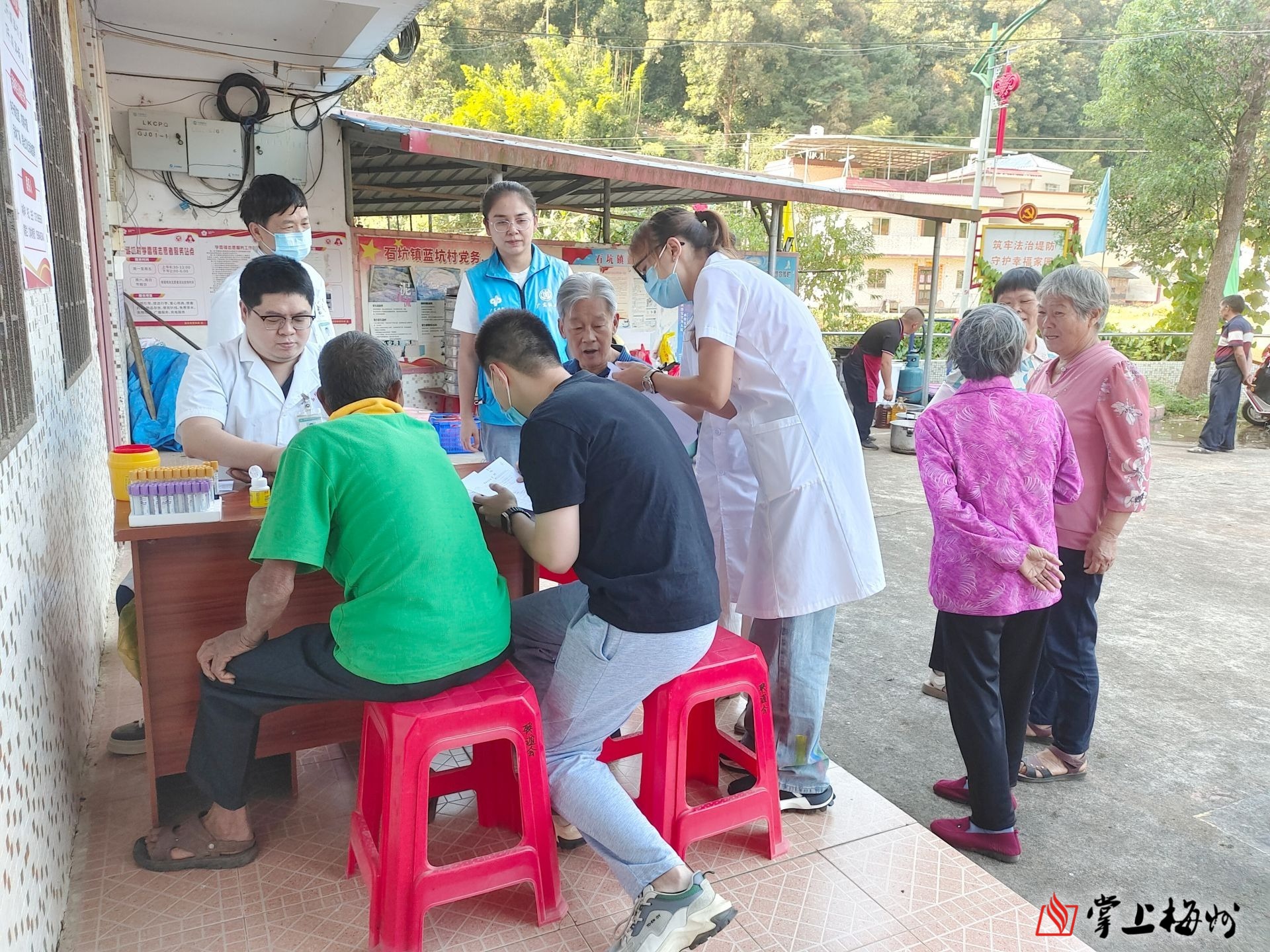 在兩個活動現場,老人們歡坐一堂,熱鬧非凡。這邊,客家山歌代表性人物、山歌大師大聲古攜搭檔正在進行即興文藝表演,為村民演唱一首首優美動聽的山歌;那邊,在設置的老年人健康體檢區,石坑鎮衛生院的醫護人員正在為前來參加活動的老人提供量血壓、測血糖等免費體檢項目,為老人健康護航;同時,社工們還借此機會向老人們進行相關政策宣講,幫助他們更好地了解和享受政府提供的各項福利和服務。