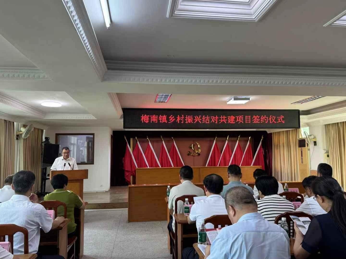活動中,梅州市人大常委會辦公室、梅州市教育局、葉劍英紀念園管理局、建行梅州市分行等鄉村振興駐鎮幫鎮扶村組團單位與梅南鎮簽訂黨建共建協議。梅州市委黨校、梅州開放大學、梅州市職業技術學校、廣東梅州職業技術學院、梅州市技師學院與梅南鎮簽訂政校合作協議。同時,舉行了廣東開放大學鄉村振興學院梅州分院梅南教學點正式揭牌。