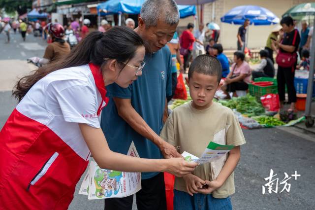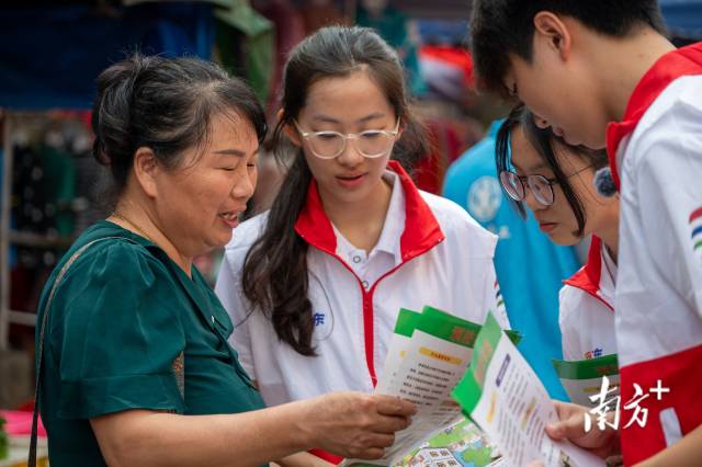 實踐不止于調研,更在于服務民生。針對盛夏蚊蟲隱患,青衿逐風突擊隊成員積極投身登革熱和基孔肯雅熱防控宣傳工作。隊員們提前整理預防知識手冊,深入圩鎮街道,向商戶、村民發放資料。他們將“清除積水防蚊孳生”“正確使用驅蚊用品”等核心要點轉化為通俗易懂的方言講解,示范家庭防蚊技巧,讓防控意識深入人心。這場志愿服務不僅為“美麗石坑”筑牢了衛生屏障,更讓青春力量融入鄉村治理,在與村民的親切交流中互動中傳遞溫暖與擔當。