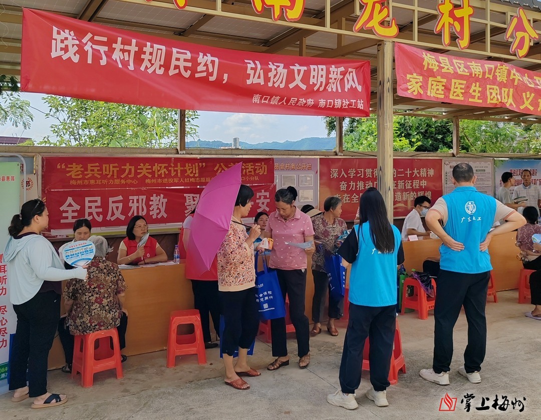 9月4日,梅縣區(qū)南口鎮(zhèn)民政辦聯(lián)合南口鎮(zhèn)綜治辦、社工站、林業(yè)站、退役站、南口衛(wèi)生院等相關(guān)部門,在南龍村開展“踐行村規(guī)民約 弘揚文明新風(fēng)”宣傳活動,將政策宣傳、民生關(guān)懷與安全守護(hù)送到群眾身邊。