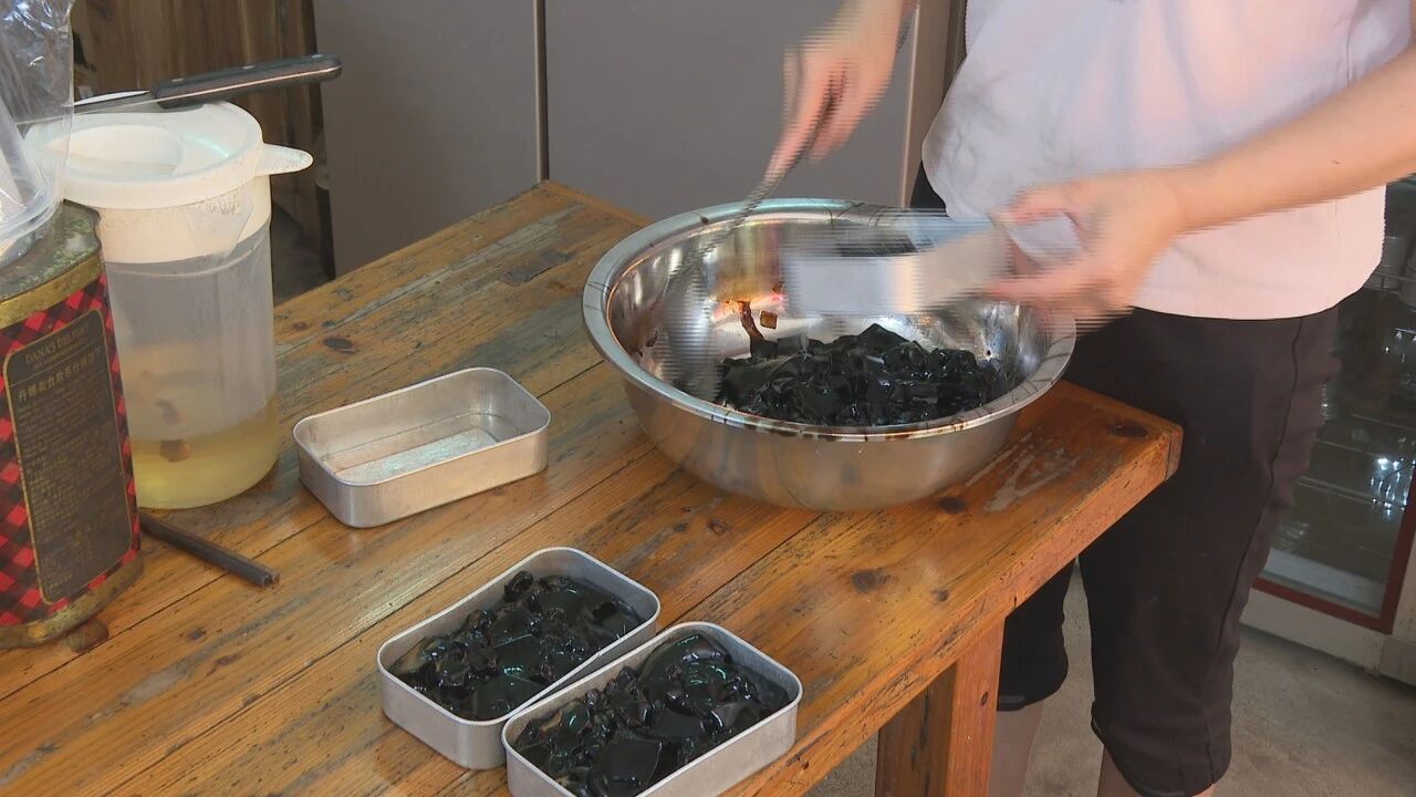 他告訴記者,仙人粄想要做到爽口Q彈,除了使用山泉水制作之外,還要選好仙人草,品質好的仙人草才是做好仙人粄的秘籍。