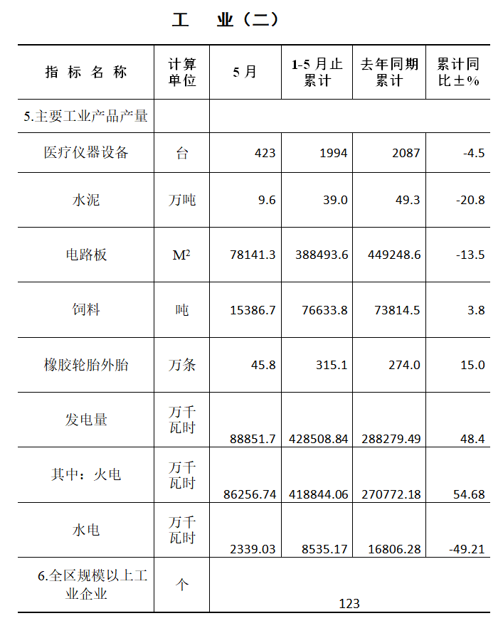 1-5月,全區(qū)全社會(huì)用電量11.4億千瓦時(shí),同比增長(zhǎng)26.9%。工業(yè)用電量6.63億千瓦時(shí),同比增長(zhǎng)39.6%;其中規(guī)模以上工業(yè)用電量5.81億千瓦時(shí),同比增長(zhǎng)48.2%