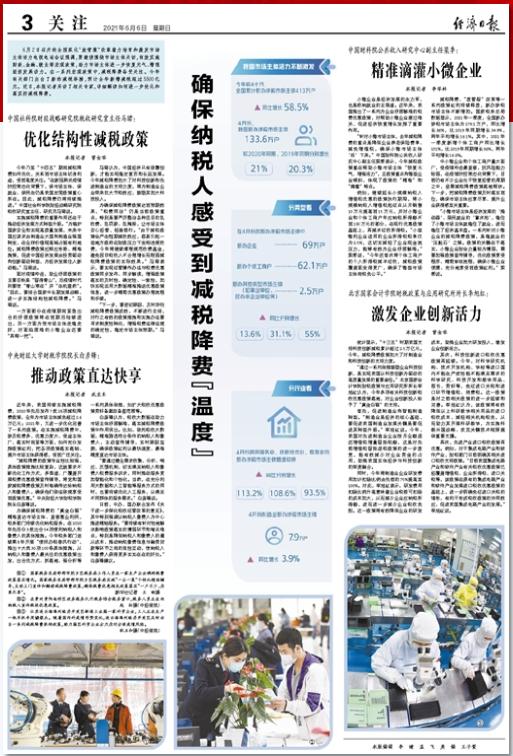近年來,我國持續實施減稅降費,2020年先后發布7批28項減稅降費政策,全年為市場主體減負超過2.6萬億元;2021年,又進一步優化完善了一系列政策。在實施減稅降費中,涉及稅費多、優惠力度大、受益主體廣、落實時間緊等方面,如何充分發揮政策紅利,把各項政策落實落細、提升市場主體獲得感,受到廣泛關注。