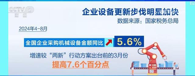 在大規(guī)模設(shè)備更新及消費(fèi)品以舊換新行動(dòng)實(shí)施后,4—8月,全國企業(yè)采購機(jī)械設(shè)備金額同比增長5.6%,增速較3月份提高了7.6個(gè)百分點(diǎn)。4—8月,新能源汽車銷量同比增長38.4%,二手汽車銷量同比增長6.2%。冰箱、電視機(jī)、家具及衛(wèi)生潔具零售業(yè)銷售收入都呈現(xiàn)同比增長態(tài)勢(shì)。此外,3項(xiàng)個(gè)稅專項(xiàng)附加扣除標(biāo)準(zhǔn)提高也釋放了民生紅利。