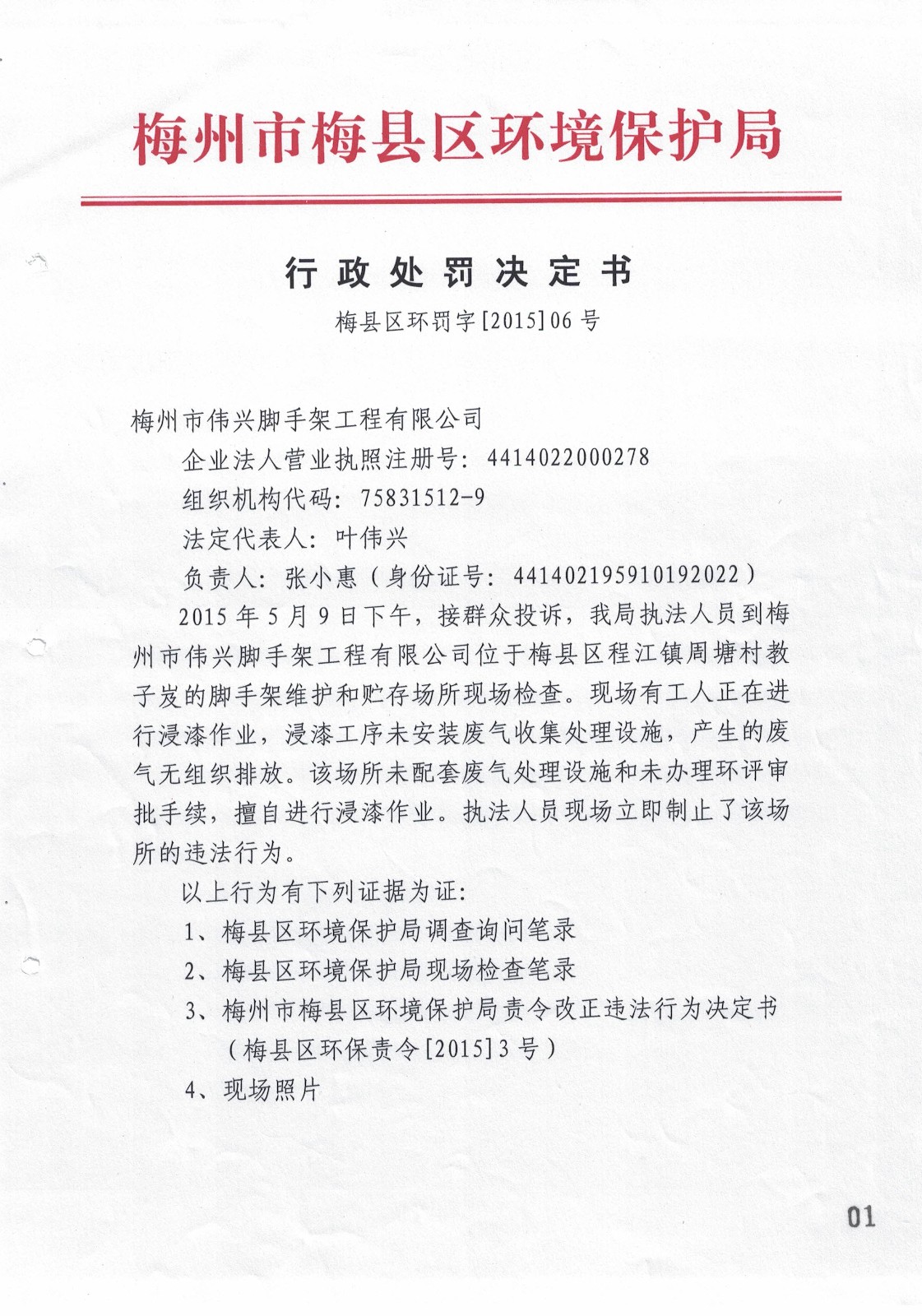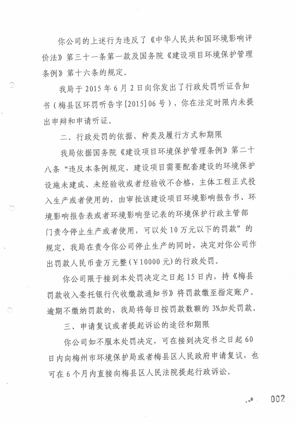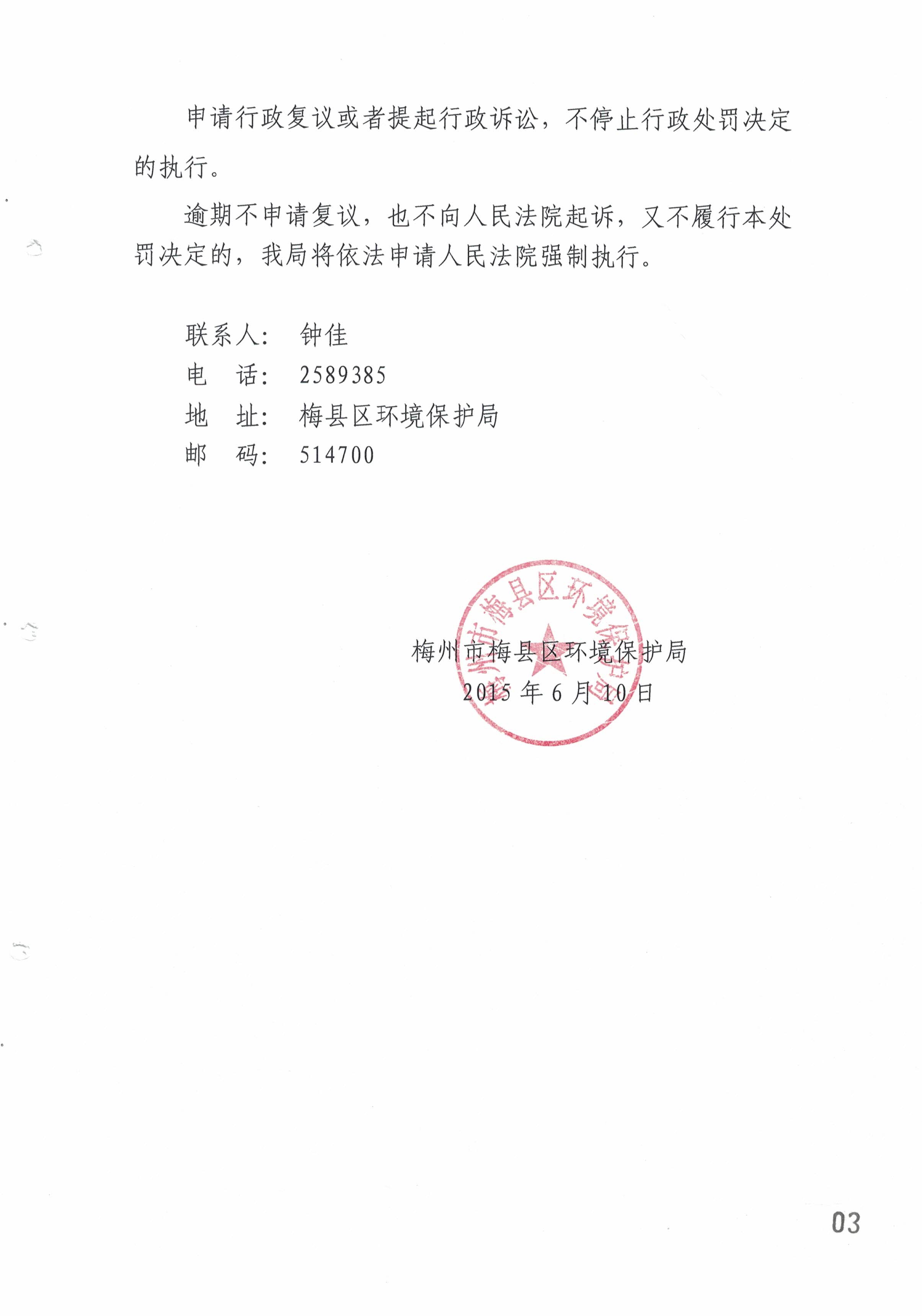梅縣區(qū)環(huán)罰字[2015]06號(hào)