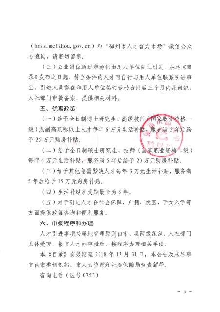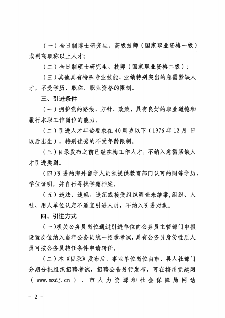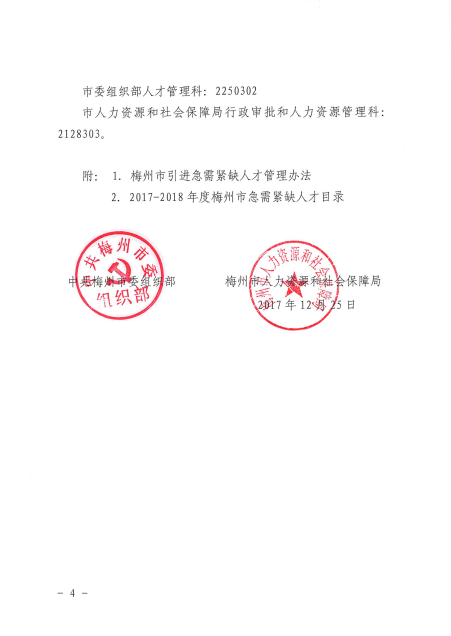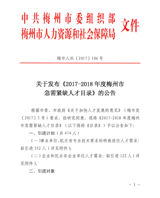 關于發布《2017-2018年度梅州市急需緊缺人才目錄》的公告 梅市人社[2017]106號