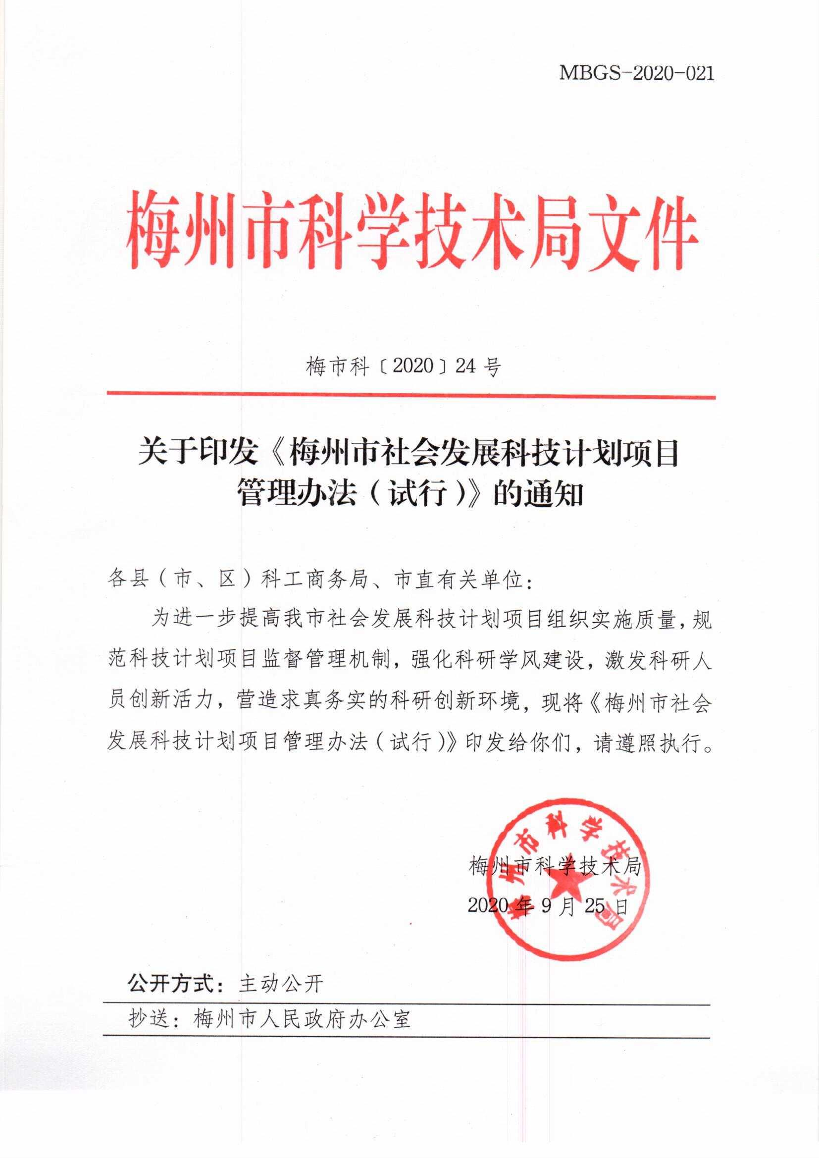 《梅州市社會發展科技計劃項目管理辦法(試行)》