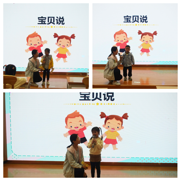 緊接著的 “寶貝說” 環節,三位勇敢的小朋友自信地走上臺,進行自我介紹,展現出童真與活力。