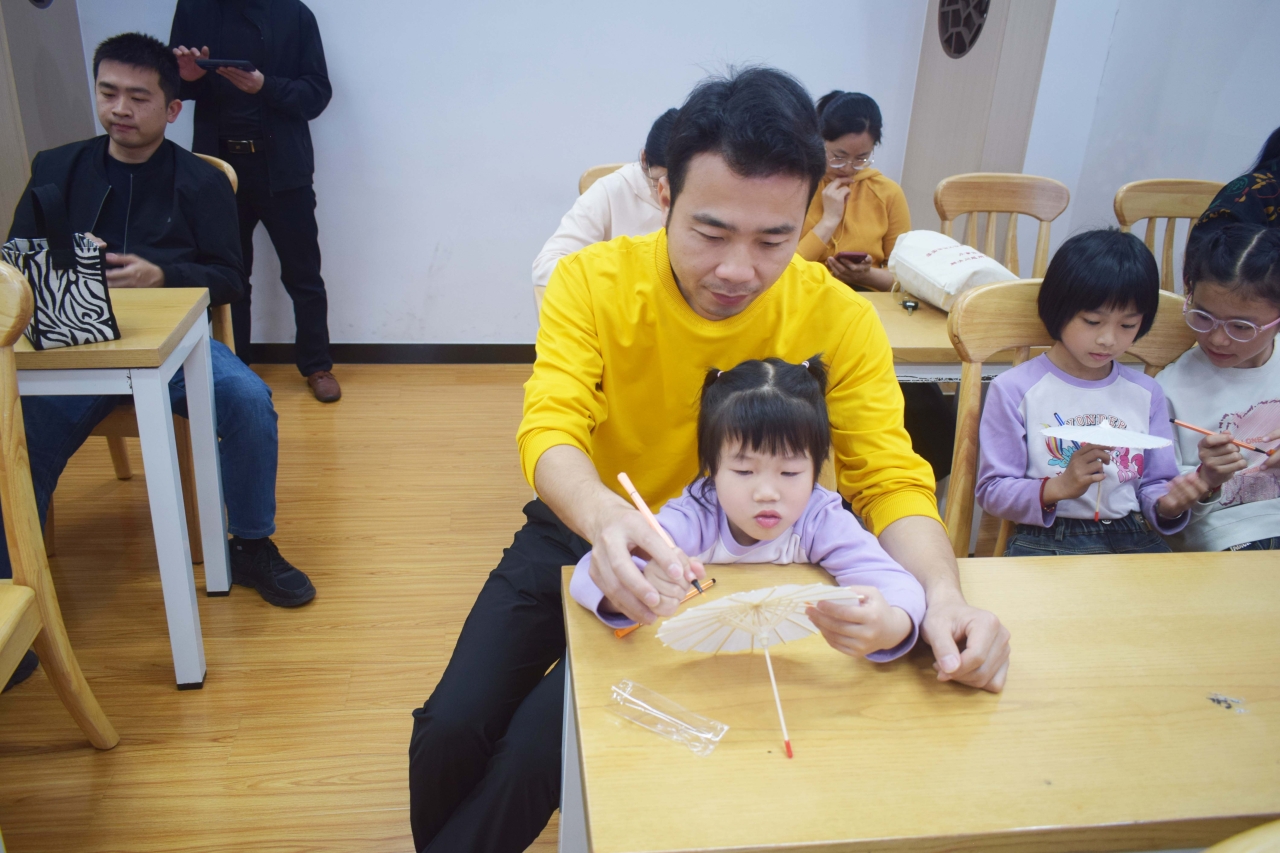 家長和孩子們齊心協力,發揮奇思妙想,為油紙傘添上絢麗色彩,繪制出獨一無二的作品。