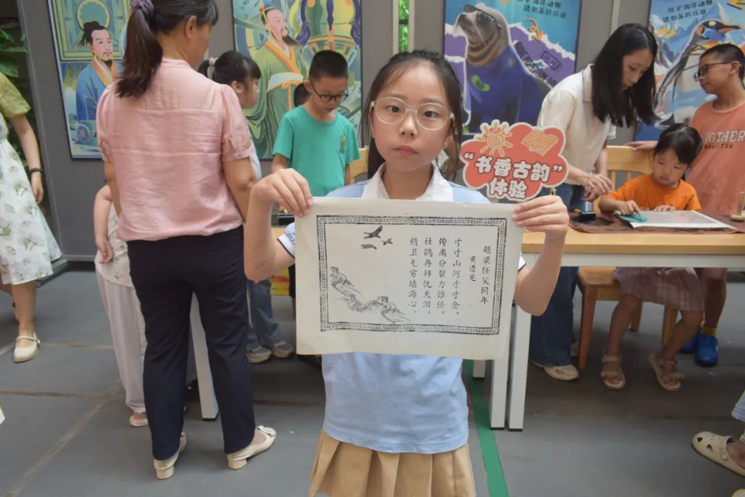 “書香古韻” 雕版印刷體驗活動讓讀者沉浸式感受了古代印刷文明的魅力。在工作人員的指導下,讀者親手進行涂墨與宣紙壓印,在墨紙的交融間,切實體會到了古老文化的溫度。這一活動不僅傳承了非遺技藝,更喚醒了大眾對紙質閱讀的文化記憶,為傳統(tǒng)非遺技藝的傳承貢獻了力量。
