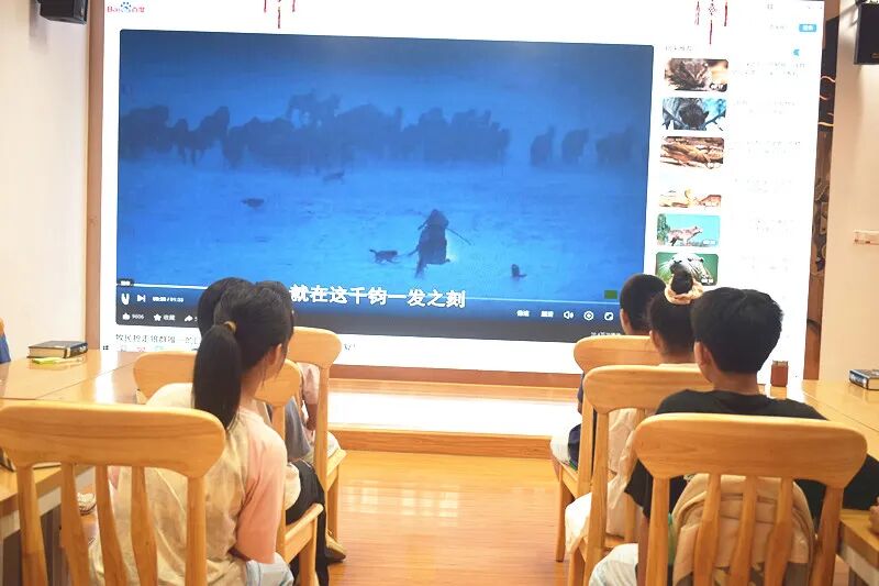 在課堂上,當孩子們分享完《東郭先生與狼》《小紅帽和大灰狼》,并一致指出故事里的 “狼” 是狡猾、貪婪的負面形象后,李老師順勢展開延伸講解。她選取《狼圖騰》中 “狼圍獵黃羊”“狼群襲馬群” 的精彩片段,通過生動描述狼群在捕獵時的戰術配合與策略布局,引導孩子們發現:不同于以往文學作品中被標簽化的負面形象,《狼圖騰》里的狼展現出 “有勇有謀” 的特質,既具備精準判斷局勢的 “智慧”,更擁有為達成目標緊密協作的 “團結” 精神,讓孩子們對 “狼” 的形象認知有了全新維度的拓展。
