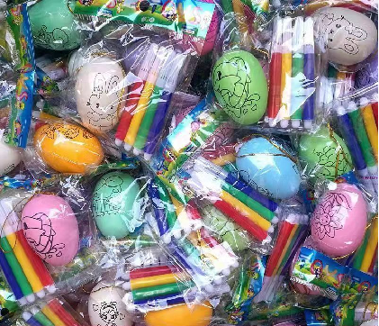 活動最后,便是繪本的延伸環節——DIY手工制作彩蛋。1.給彩蛋的圖案涂色。2.每個小朋友在裝有8個仿真雞蛋、8個仿真鴨蛋、4個仿真鵝蛋的抽獎箱中抽出一個仿真蛋,帶回家跟家長一起DIY制作彩蛋。