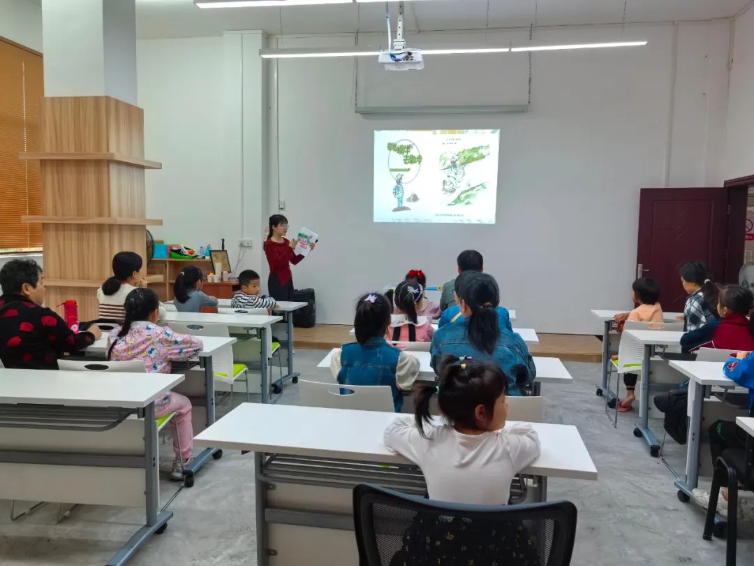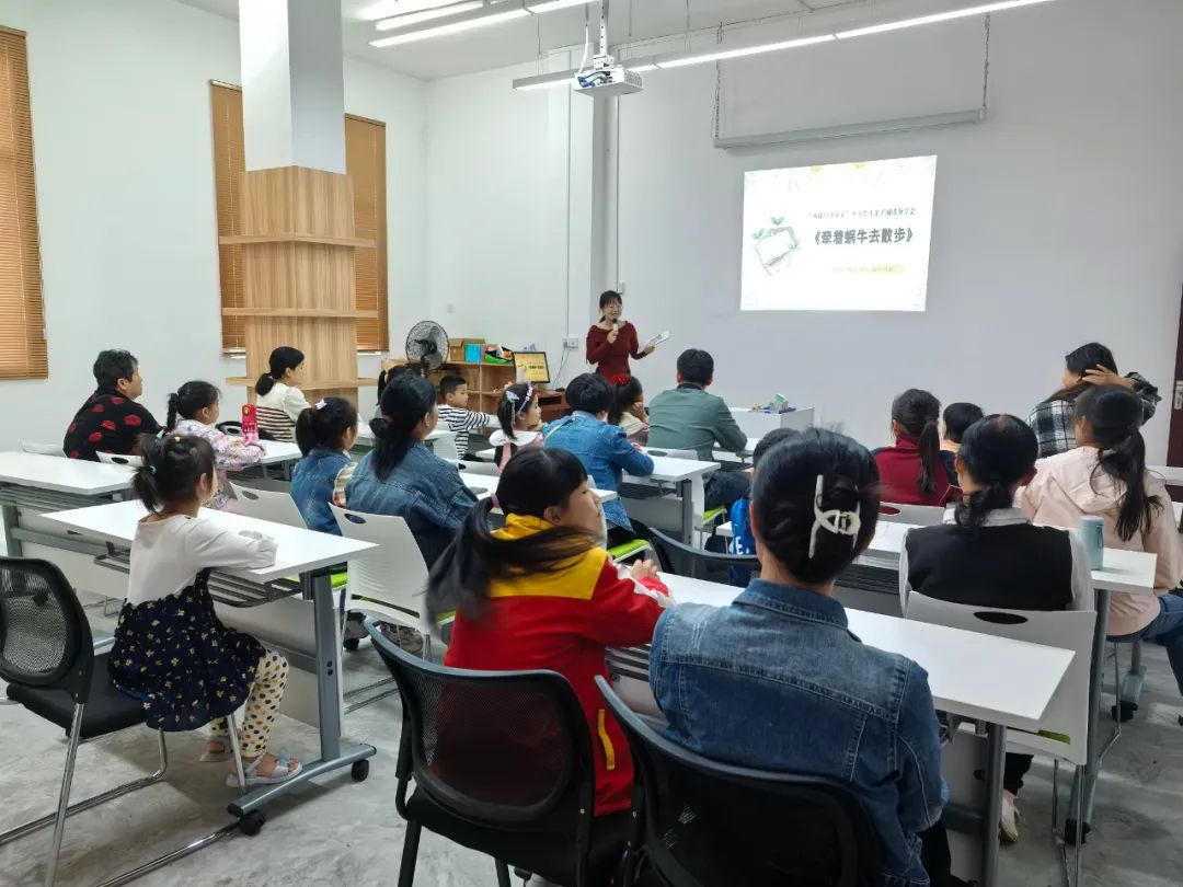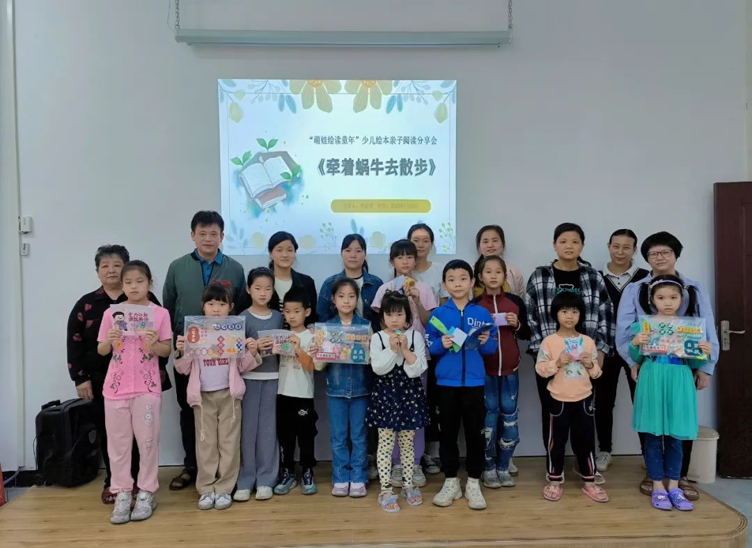 2025年4月26日上午松口圖書館在多功能室舉辦“萌娃繪讀童年”少兒繪本親子閱讀分享會之《牽著蝸牛去散步》,分享了一個關于耐心、成長與愛的故事,讓親子家庭放慢腳步,發現生活中的美好,享受親子時光。本次活動共有10組親子家庭參與。