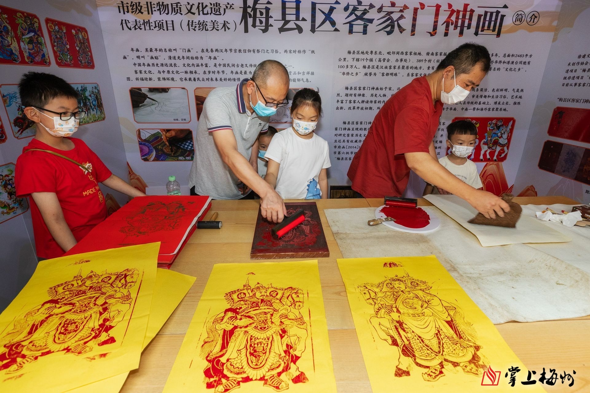 小朋友在展示展演活動現場體驗拓印梅縣區“客家門神畫”。(連志城 攝)