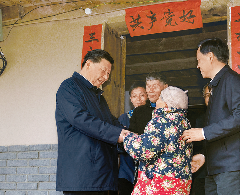 中華民族傳統節日農歷春節來臨之際,中共中央總書記、國家主席、中央軍委主席習近平來到四川考察調研,看望慰問各族干部群眾,向全國各族人民致以美好的新春祝福。這是2018年2月11日上午,習近平在涼山彝族自治州昭覺縣三岔河鄉三河村貧困戶吉好也求家中看望。 新華社記者 鞠鵬/攝